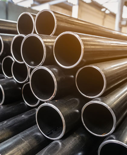 Hollow cylindrical steel structures used in plumbing, scaffolding, and fluid transport.